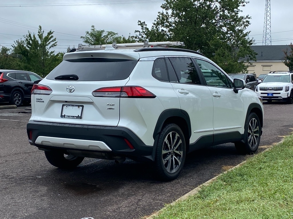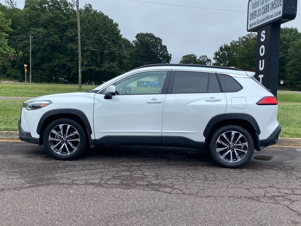 Introducing a sleek, white 2022 Toyota Corolla Cross that is as stylish as it is versatile. This used beauty is equipped with a panoramic moonroof, allowing you to catch glimpses of the sky as you cruise down the road. The spacious interior is perfect for all your road trip essentials, whether it's camping gear, sports equipment, or a trunk full of shopping bags. The keyless entry and push-button start make hopping in and out a breeze, while the touchscreen display keeps you connected and entertained on the go. With its advanced safety features, including lane departure warning and automatic emergency braking, you can feel confident and secure no matter where your adventures take you. So buckle up, hit the open road, and let this Toyota Corolla Cross be your trusty companion on all your exciting journeys ahead.