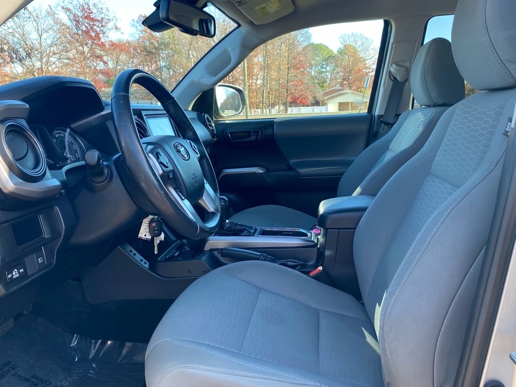 Buckle up for a wild ride in this sleek and shiny silver 2018 Toyota Tacoma! This truck is a true adventure seeker, ready to take you on all of your off-roading expeditions with its rugged four-wheel drive capabilities. The spacious interior comfortably seats you and your crew, with plenty of room for all your gear in the truck bed. The powerful engine purrs like a contented beast as you cruise down the highway, turning heads with its stylish design. The sun shining through the windows creates a stunning light show off the polished exterior, making you feel like a rockstar on the road. This Tacoma is not just a vehicle, it's a lifestyle - one filled with excitement and exploration. So why settle for an ordinary ride when you can own a piece of the action with this amazing truck? It's time to hit the open road and see where the journey takes you in your trusty Toyota Tacoma!